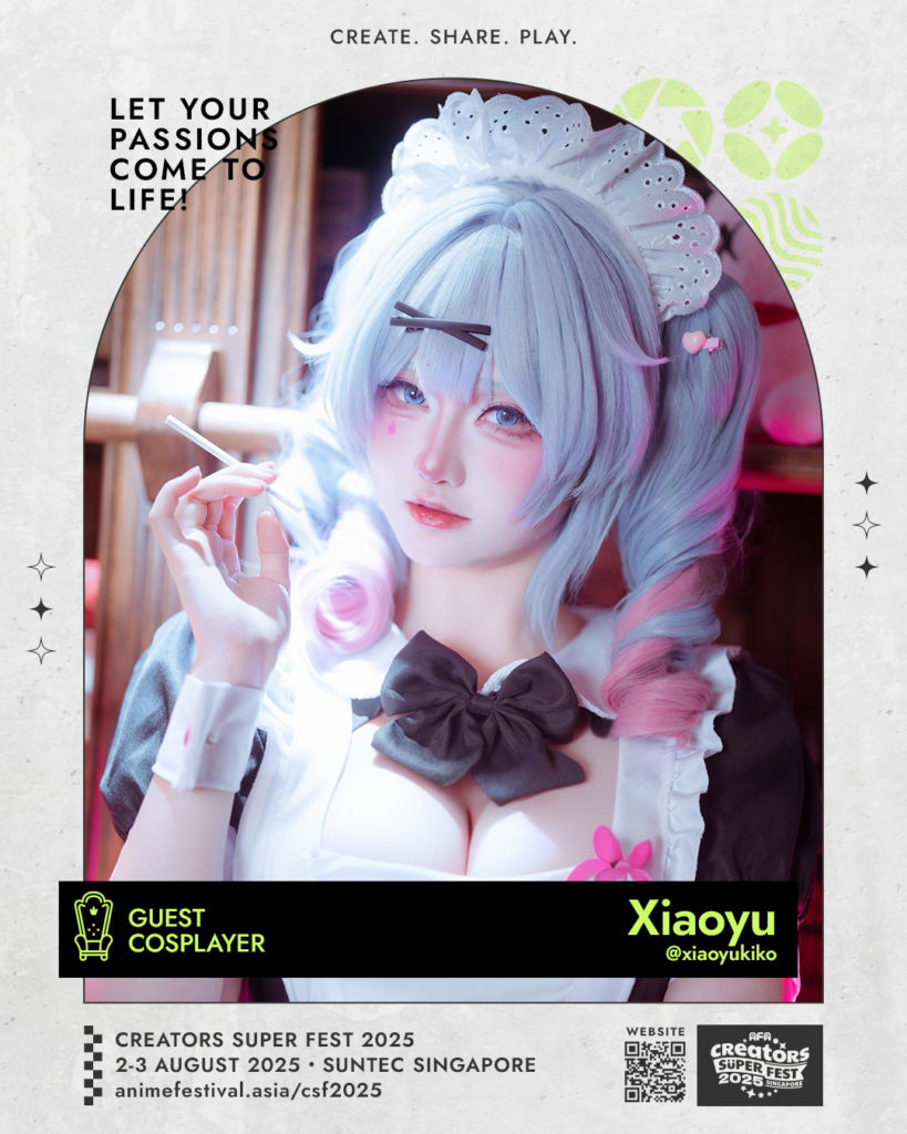 Singapore-based cosplayer Xiaoyu has a following of over 1.4 million fans across the world on social media, making her one of the most influential cosplayers in the SEA region. Xiaoyu has also worked with many popular ACG-related companies, and is a frequent international guest cosplayer.