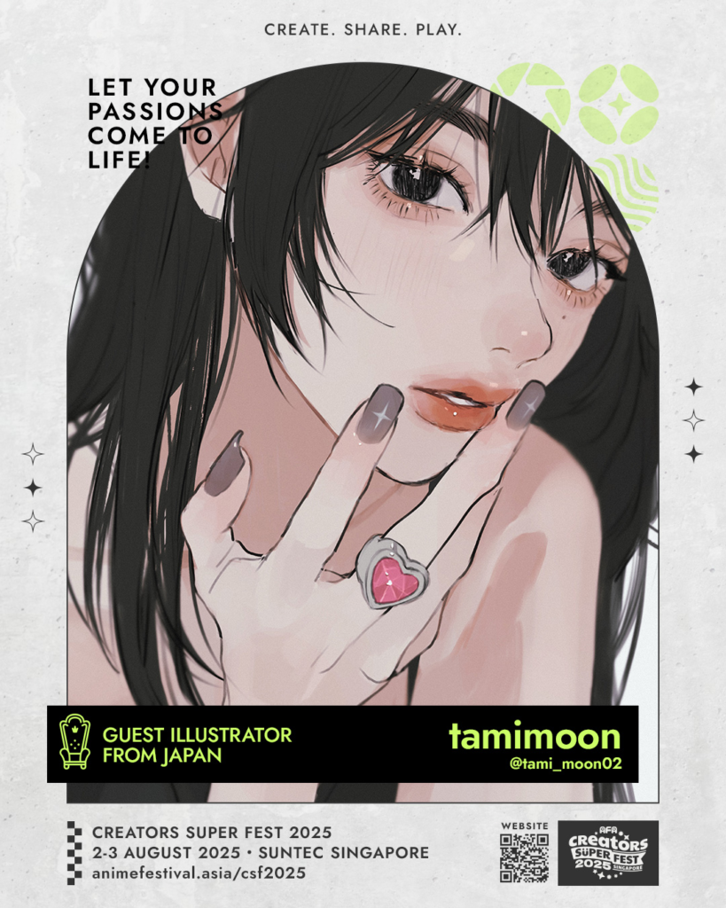 tamimoon is a Japanese artist who is well-known for their fashionable female illustrations, having gained 400,000 followers on social media. tamimoon has been a featured illustrator for Asia Creators Cross, a special artist exchange program between Niconico Chokaigi events in Japan and AFA events in Southeast Asia.
