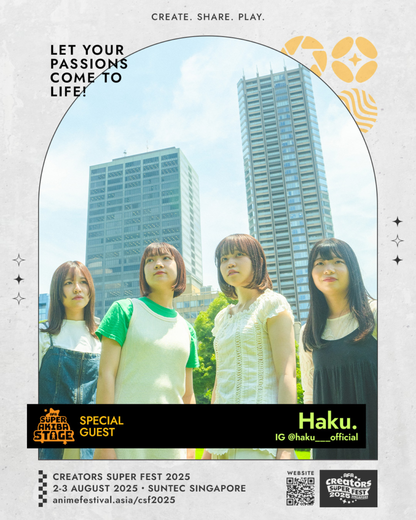 Formed in 2019, Haku is a four-piece band based in Osaka, Japan. The band is set to perform their first show in Singapore at AFA CFS, featuring a unique sound inspired by British and American indie pop.