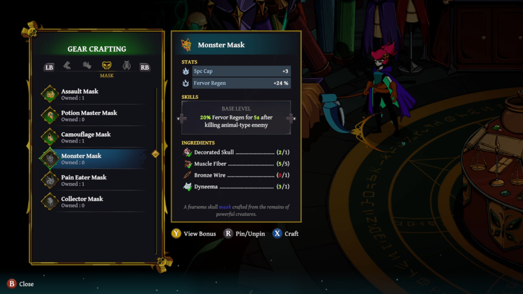 There is however some friction within the current crafting system, which is that you will need to remember every item you are crafting by yourself. When pinning items to craft, these pins don’t show up in other menus or during the main gameplay scene. The materials needed for the item also do not show up in other menus.