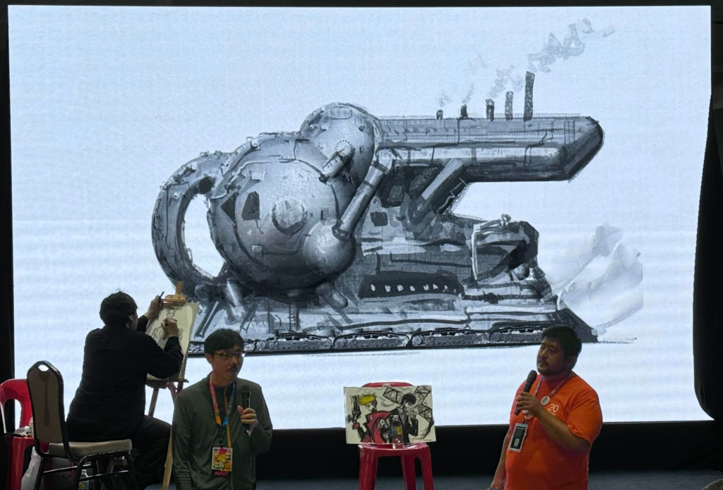 The studio also held a series of panels throughout the weekend. To start off, we had Fumihiko Katagai, who boasts an astonishing skillset ranging from animation to illustration, and can be seen in the image below doing a live character sketch . He was joined by Yumihiko Amano, the mastermind behind the mechanical designs in Trigun Stampede, who shared his experience in working on the series.