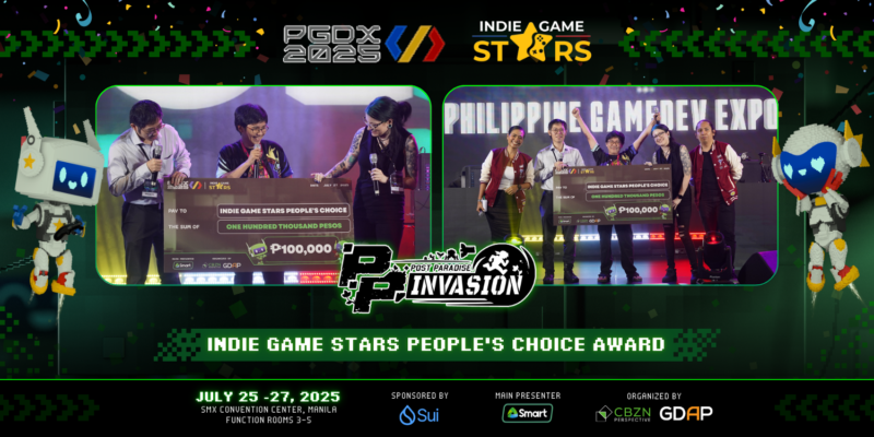 PP Invasion, an indie game project created by Alex E. Valdez, was officially crowned as the People’s Choice Award winner at the Philippine Game Dev Expo (PGDX)’s Indie Game Stars showcase. Garnering the highest number of public votes during the 3-day event, the game earned a grand prize of ₱100,000.