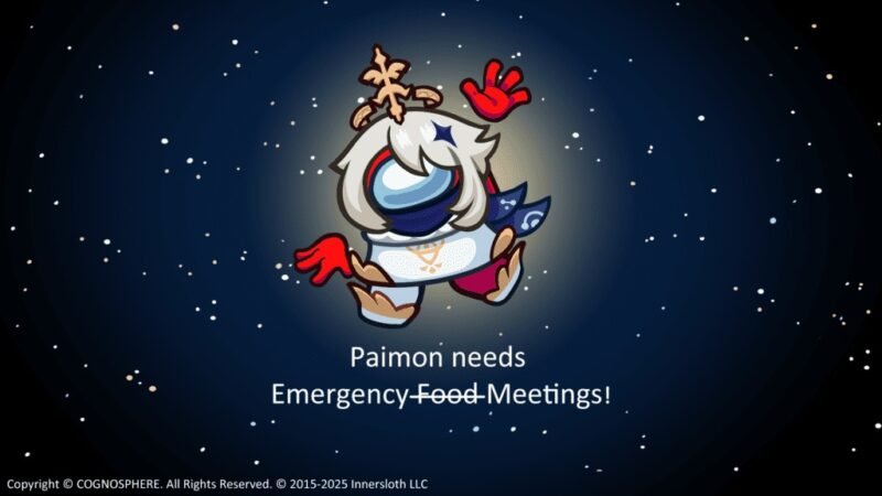 The collaboration was born from a shared love for the game among the developers. According to the announcement, one of the Among Us crewmates was “obsessed with playing Genshin Impact between tasks,” leading to a discussion with HoYoverse, Genshin Impact’s developers. The result is a set of free, Paimon-themed cosmetics available to all players.