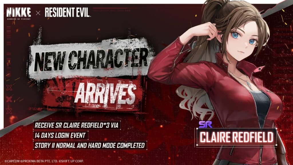 • Claire Redfield (SR): The compassionate and resourceful Claire Redfield also makes her Nikke debut. In a surprising turn, she is introduced as a free SR character, obtainable through a 14-day login event. While not a member of a military unit like the others, her shotgun-wielding design from the Classified: Track the NEO-Virus web event points to her being a reliable Support character.