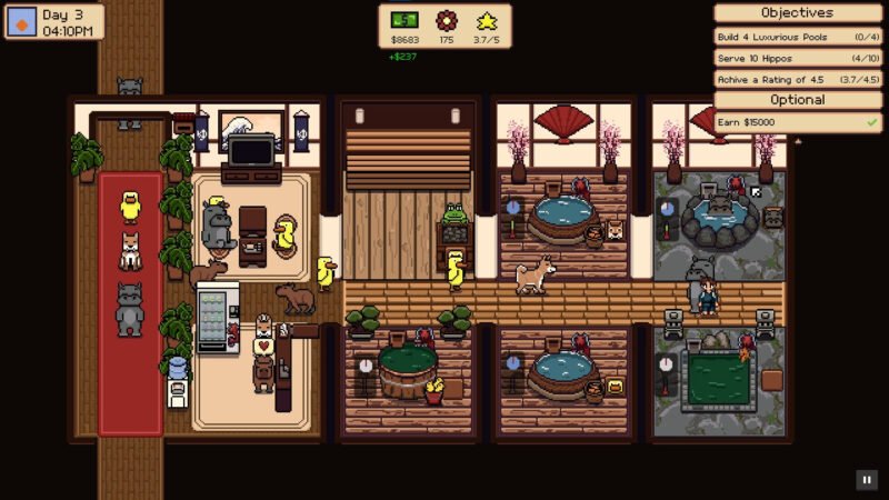 The result was Bathhouse Creatures, a management simulator where you run bathhouses for talking animals. In this short yet cozy experience, you serve quirky animals, upgrade your bathhouse facilities, and uncover heartfelt and wholesome stories while you watch your bathhouse grow to be the best it can be.