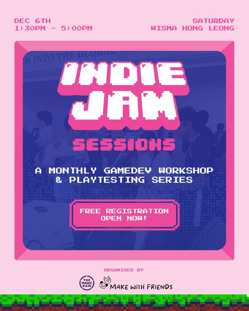 Introducing Indie Jam Sessions, a monthly game development workshop and playtesting series presented by THE MAGIC RAIN, the organisers of Indie Jam, and Make with Friends, a Malaysian indie games studio.