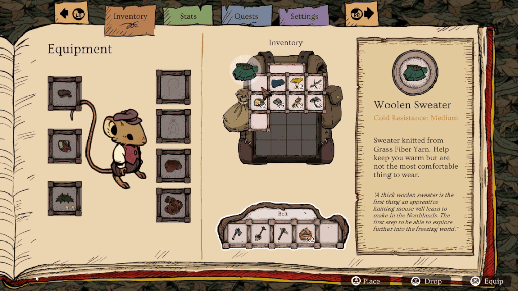 What keeps me going is the atmosphere. The handcrafted art feels like it walked out of a children’s storybook. The soundtrack fits the snowy stillness. And every small moment inside the warm burrow—from knitting to cooking to placing new furniture—feels like a reward for the struggle of surviving outside.