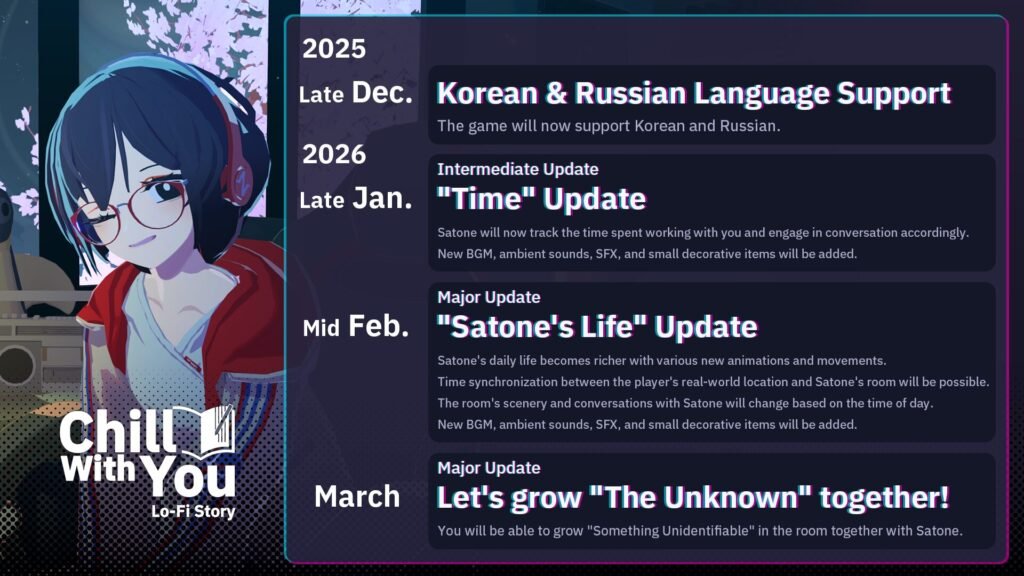 The update also adds gameplay improvements, where time spent concentrating can now be accumulated to exchange for new backgrounds, accessories and ambient sounds. The developers have planned future updates that will add new ambient sounds, BGM tracks, time synchronization, and more interactivity with Satone.