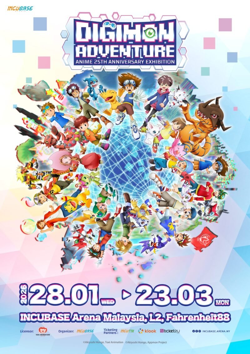 Chosen Children, assemble! The first-ever Digimon exhibition in Malaysia is happening this 28 January to 23 March, happening in conjunction with the anime’s 25th anniversary. Presented by INCUBASE Studio, the Digimon Adventure Anime 25th Anniversary Exhibition will take place at INCUBASE Arena Malaysia in Kuala Lumpur’s Fahrenheit88.