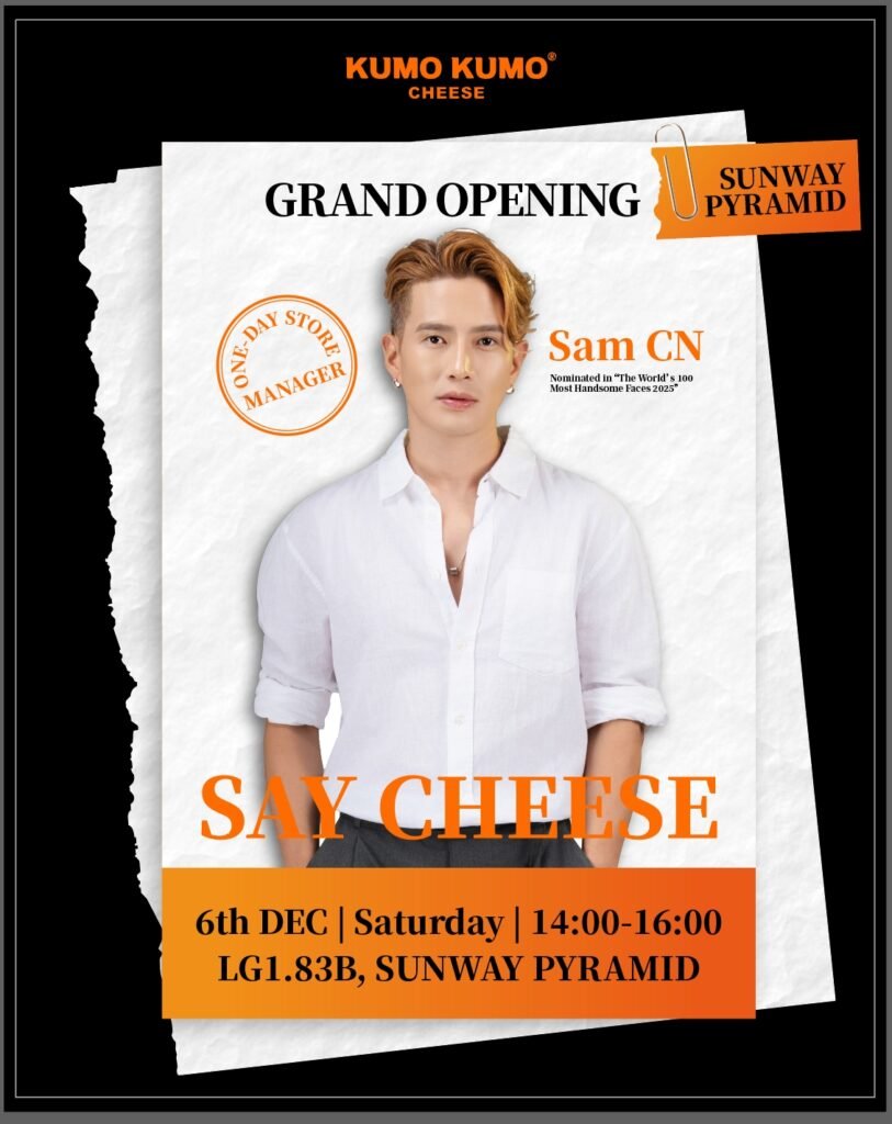 During the event, Sam will put on the KUMO KUMO uniform, interact with fans, and personally participate in key store activities, including  live hot stamping on freshly baked cheesecakes, and a mini sharing session about his first impressions of KUMO KUMO Malaysia. Plus, the first 100 visitors can also stand a chance to receive limited-edition merchandise!