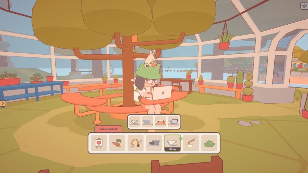 The real experience begins once you settle down and take your pick from a list of focus activities. From gaming to creating art, each activity comes with a cute animation and slight variations depending on your location and surroundings. For instance, certain activities are only available when you’re sitting at a table, while others are only available while standing. There’s even a wide range of furniture across the island with different interactability, including your own desk which you can customise.