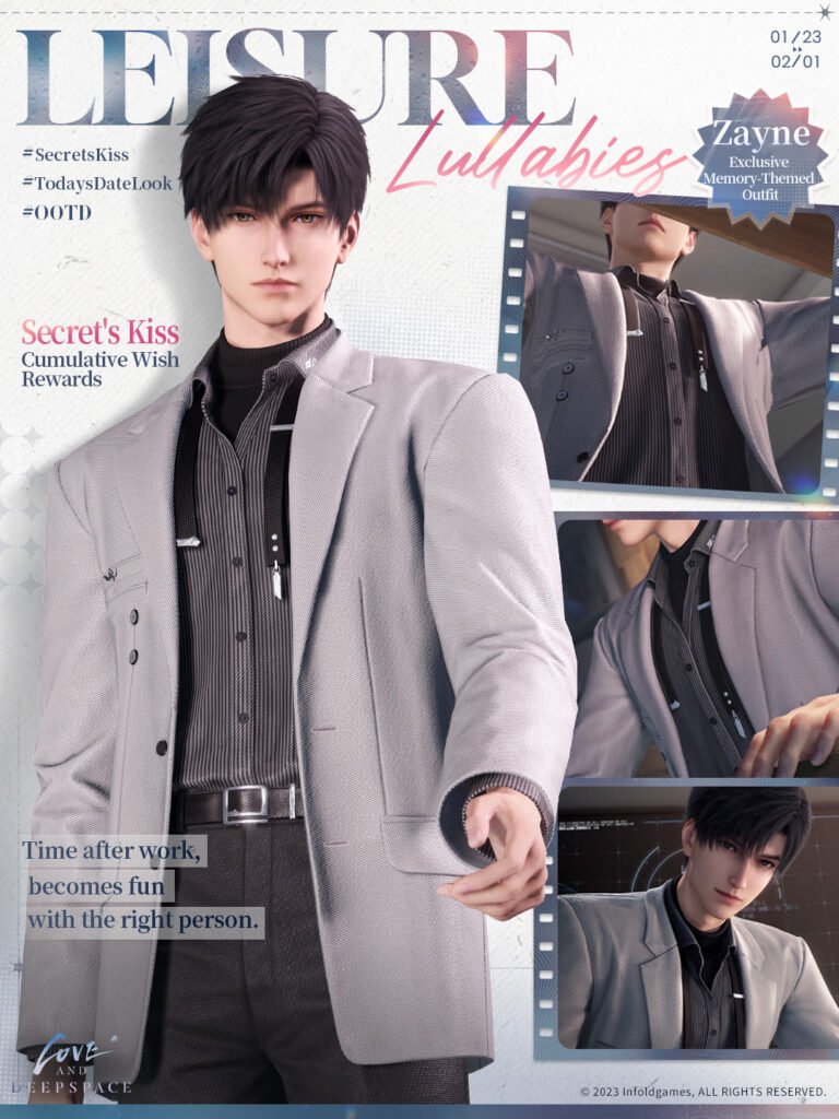 - The [Leisure Lullabies] Outfit: An exclusive, memory-themed look for Zayne that captures his rare, relaxed side.