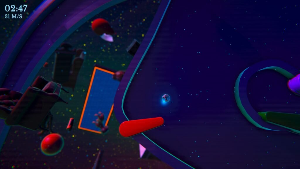 Controls are incredibly simple: you have one button that triggers all of the flippers in the map, as well as directional inputs to “nudge” the ball and shift your momentum ever so slightly. Movement in the game is also fleshed out by supporting mechanics that provide a decent depth to gameplay – flippers may flip at different speeds, colored surfaces can either increase or dampen the power of a bounce, even the way the ball spins can be a factor.