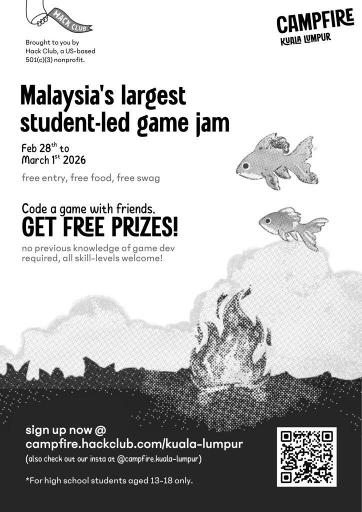 This February 28th to March 1st, the largest student-led game jam in the world makes its way to Kuala Lumpur. Campfire is a two-day global hackathon organised by high schoolers, with distributed events running in over 200 cities worldwide at the same time.