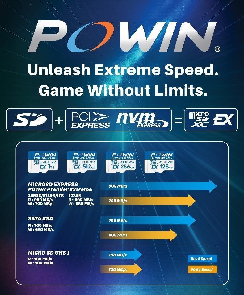 The Powin microSD EXPRESS utilises PCIe Gen3x1 technology, engineered specifically to handle the heavy demands of next-gen devices. With 512GB capacity, 900MB/s read speed and 700MB/s write speed, this card drastically cuts down on load times and data transfers – whether you’re installing massive AAA titles or instantly saving high-res gameplay footage.