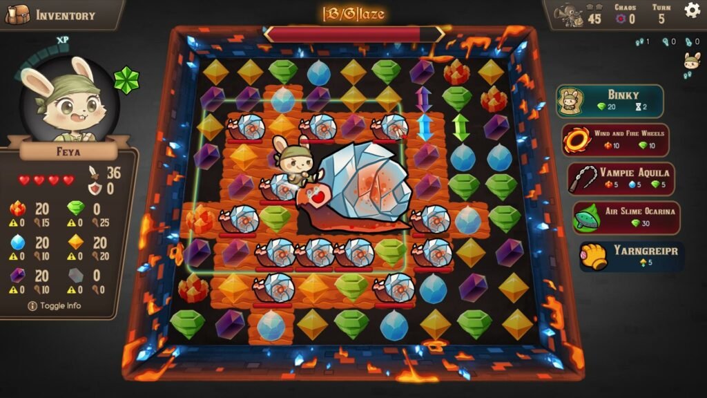 Such as Sonya the Nekomancer, who summons Kurokos to distract enemies; Biscuit the Paladinu, who has a free attack per turn; Butaryo the Boarlock, who can swap two pieces of mana from anywhere in the room; Pearl the Sowceress, who is adept at attacking with mana; and Bob the Birbarian, who hits hard with high melee and HP.