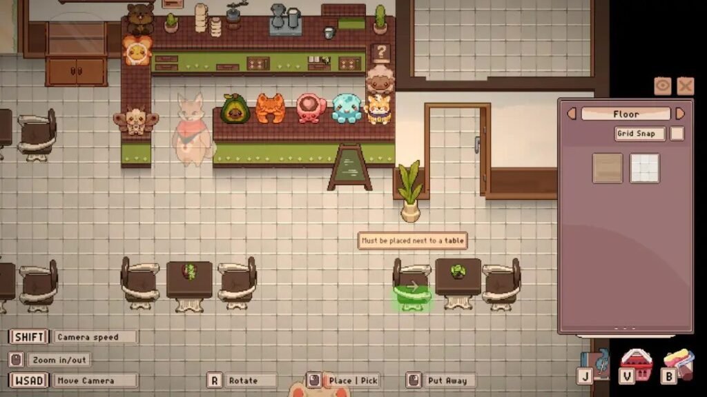 Visually, Tailside is an absolute triumph. The pixel art is warm and inviting, channeling a distinct Studio Ghibli energy through its forest-dwelling clientele. Whether it’s a bear requesting a complicated latte or a tiny sprite hovering near the counter, the character designs are undeniably charming. This aesthetic is bolstered by a deep decoration system that is easily the game’s strongest suit.