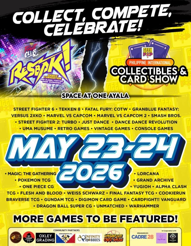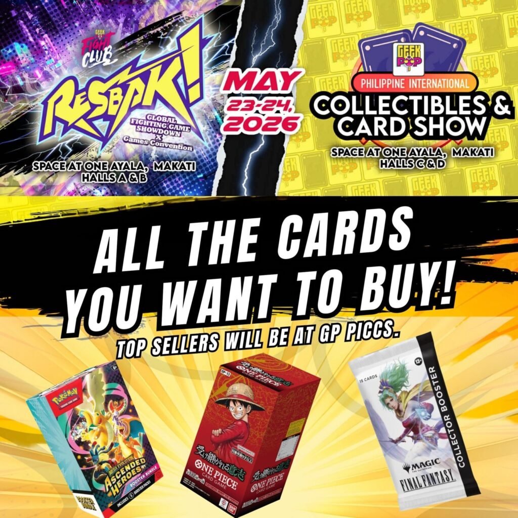 Geek+Pop’s Philippine International Collectibles and Card Show (PICCS) and RESBAK is happening on May 23 to 24, 2026 at SPACE at One Ayala, Makati City, bringing together trading cards and fight sticks for an action-packed weekend. Tickets are available for pre-purchase at https://geekpop.helixpay.ph/.